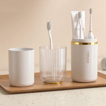 Transparent Toothbrush Travel Container Toothpaste Storage Cup Box Organizer 3-in-1 White
