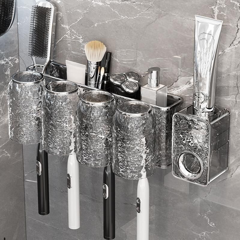 Οργανωτής οδοντόβουρτσας μπάνιου οικιακό πολυλειτουργικό ράφι αποθήκευσης, στυλ: Γκρι διαφανές φλιτζάνι