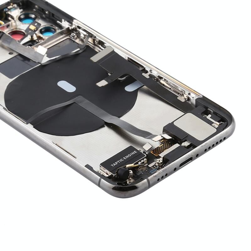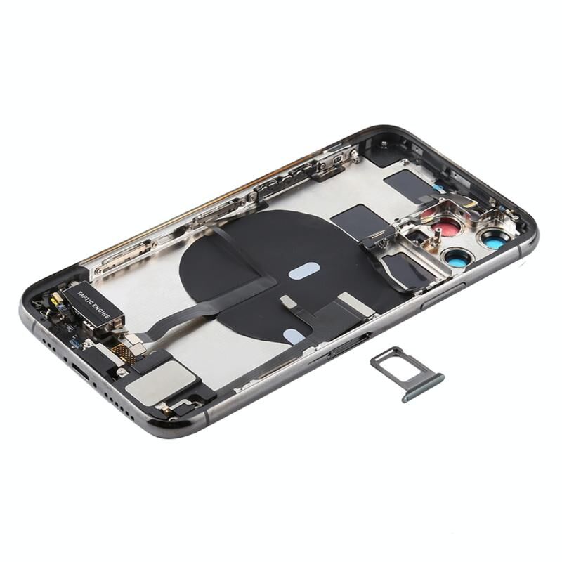 1. Battery back cover assembly (with side keys & power button + volume button flex cable & wireless charging module & motor & charging port & loud speaker & card tray & camera lens cover) replacement for iPhone 11 Pro Max