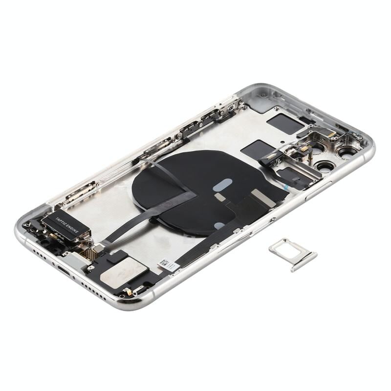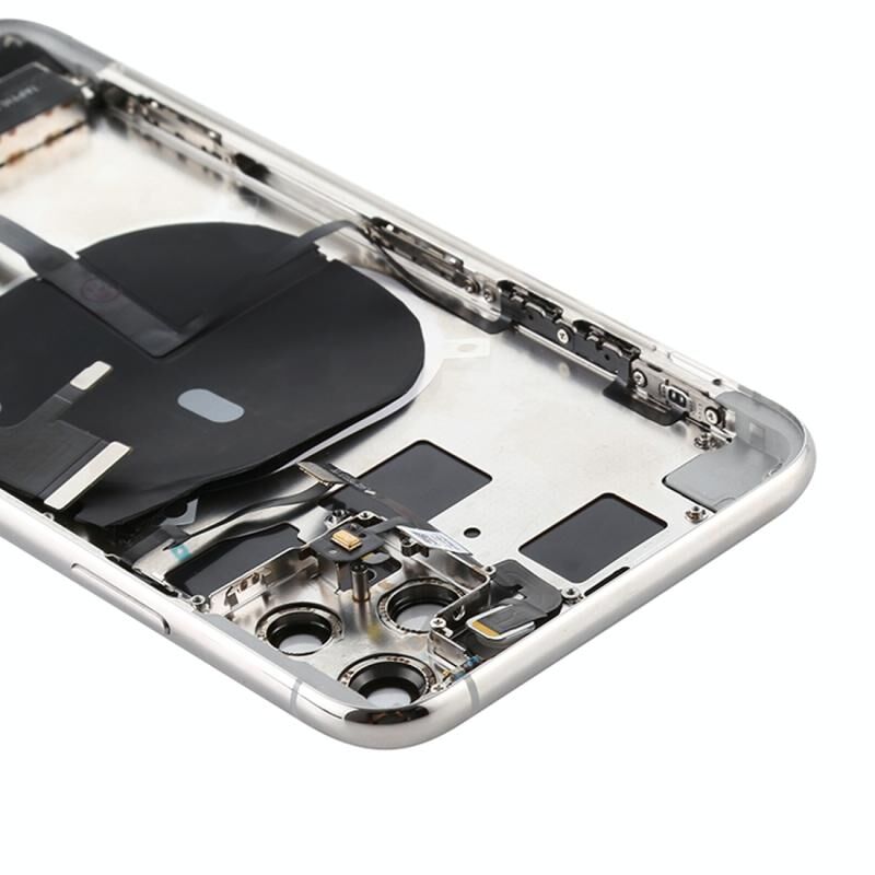 Battery Back Cover Assembly (with Side Keys & Power Button + Volume Button Flex Cable & Wireless Charging Module & Motor & Charging Port & Speaker Ringer Buzzer & Card Tray & Camera Lens Cover) for iPhone 11 Pro(Silver)
