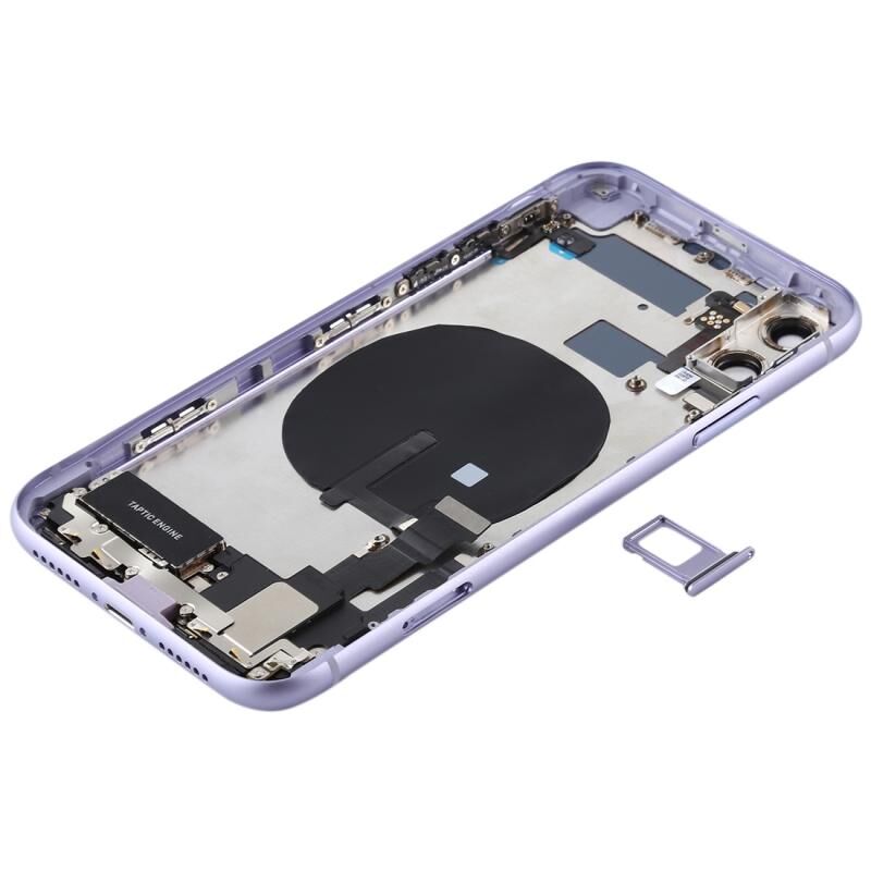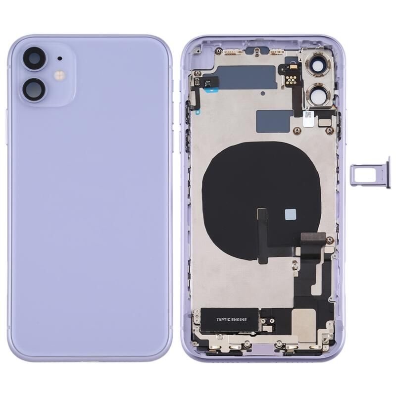 Battery Back Cover Assembly (with Side Keys & Power Button + Volume Button Flex Cable & Wireless Charging Module & Motor & Charging Port & Speaker Ringer Buzzer & Card Tray & Camera Lens Cover) for iPhone 11(Purple)