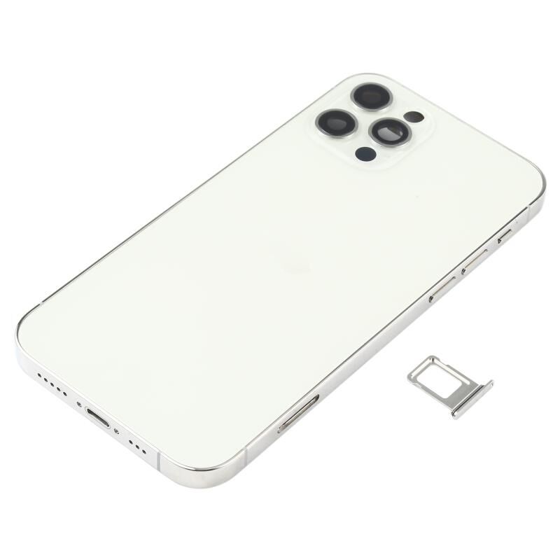 Battery Back Cover Assembly (with Side Keys & Speaker Ringer Buzzer & Motor & Camera Lens & Card Tray & Power Button + Volume Button + Charging Port & Wireless Charging Module) for iPhone 12 Pro(White)