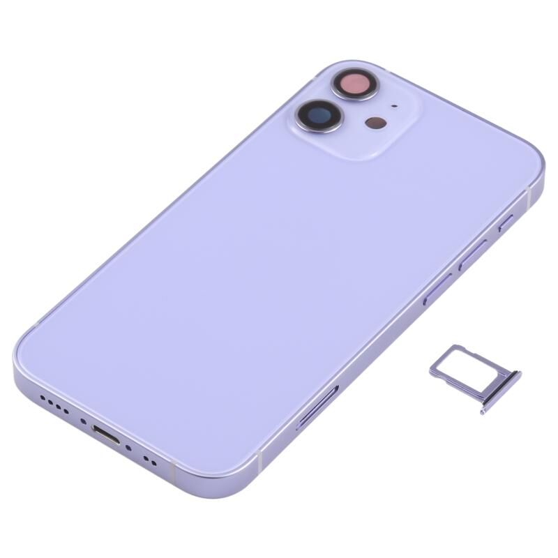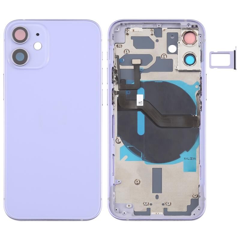 Battery Back Cover (with Side Keys & Card Tray & Power + Volume Flex Cable & Wireless Charging Module) for iPhone 12 Mini(Purple)