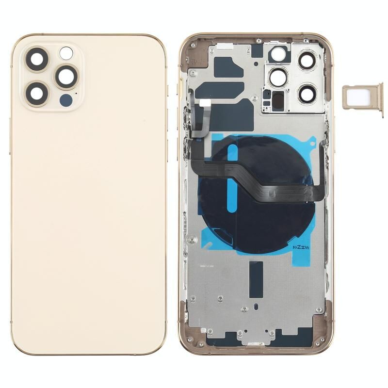 Battery Back Cover (with Side Keys & Card Tray & Power + Volume Flex Cable & Wireless Charging Module) for iPhone 12 Pro(Gold)
