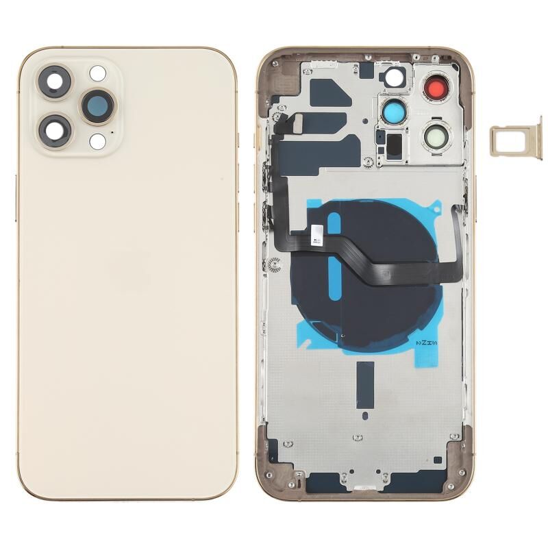 Battery Back Cover (with Side Keys & Card Tray & Power + Volume Flex Cable & Wireless Charging Module) for iPhone 12 Pro Max(Gold)