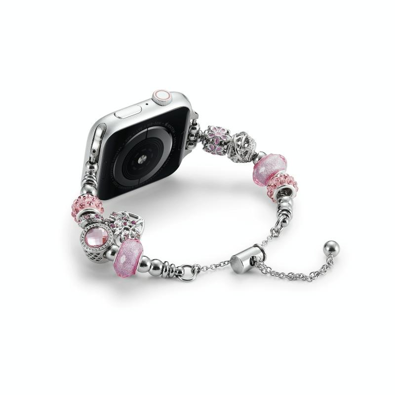 Βραχιόλι με χάντρες για Apple Watch Series 10 46mm (Ροζ Καρδιά)