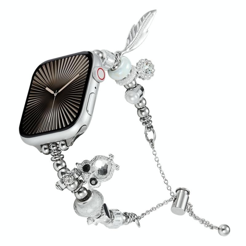 Βραχιόλι με χάντρες για Apple Watch Series 10 46mm (Ροζ Καρδιά)