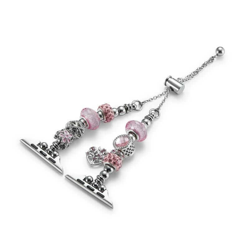 Bead Bracelet Metal Watch Band For Apple Watch Ultra 2 49mm(Pink Heart)