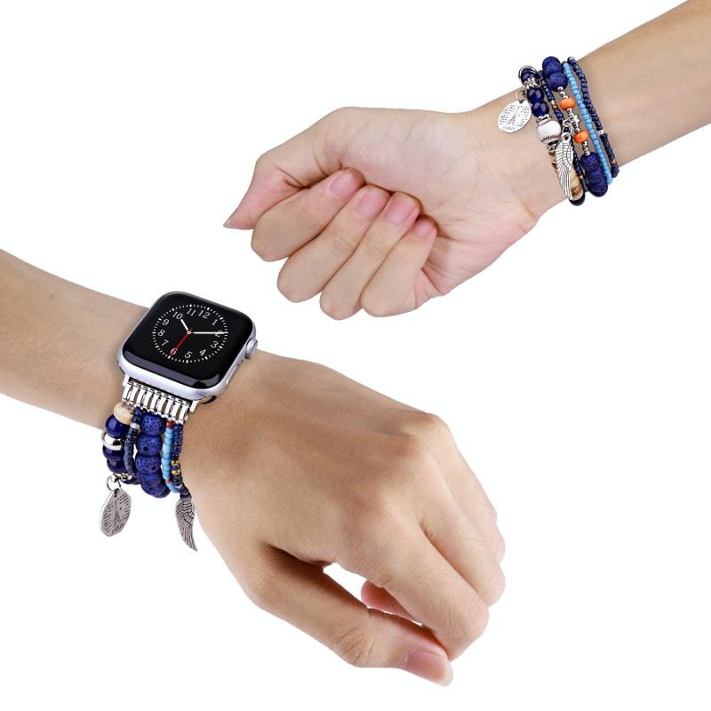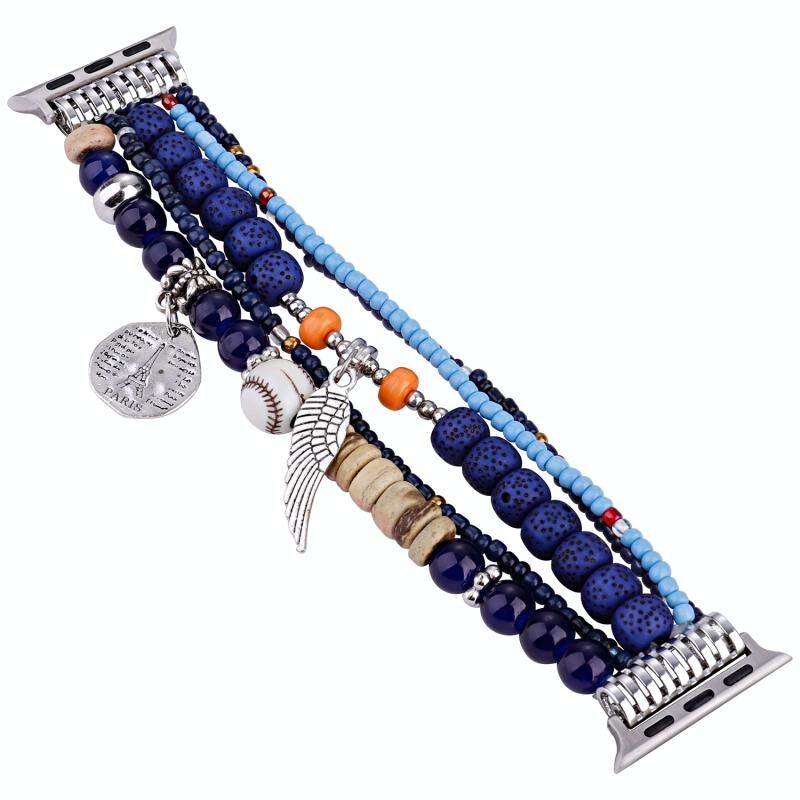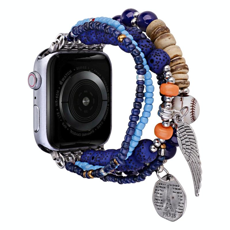 Λουράκι ρολογιού για Apple Watch Series 8&7 45mm / SE 2&6&SE&5&4 44mm / 3&2&1 42mm με χάντρες και σχέδιο λουλουδιών (Βασιλικό μπλε)
