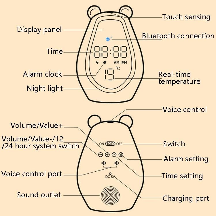 -Έκδοση Bluetooth: ξυπνητήρι (μία ομάδα, κανονικοί ήχοι κλήσης, απεριόριστα αναβολές) + ρύθμιση έντασης ήχου + φωνητικές οδηγίες + αισθητήρας αφής + εμφάνιση ώρας και θερμοκρασίας + 12/24 ώρες