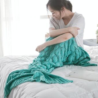 Κουβέρτα με πλεκτό σχέδιο ουράς γοργόνας, Κουβέρτα ουράς ψαριού, Μέγεθος: 195x90cm (Ανοιχτό Μωβ)