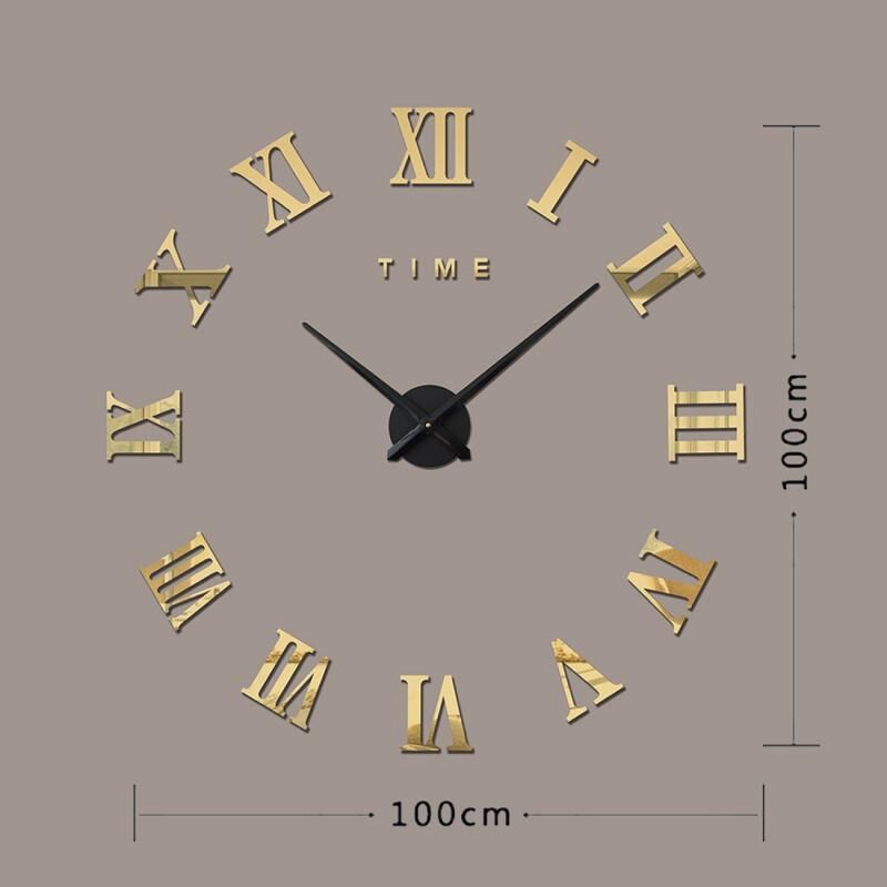 Bedroom Home Decoration Frameless Roman Numeral Large DIY Wall Sticker Mute Clock, Size: 100*100cm(Gold)