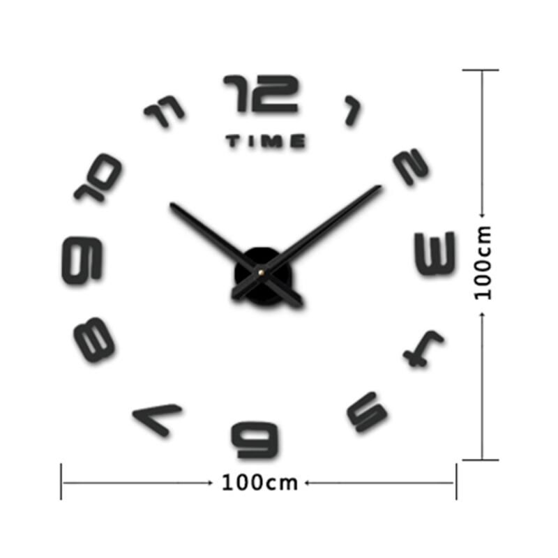 Bedroom Home Office Decoration Modern Frameless Large Number DIY 3D Mirror Wall Sticker Quiet Clock, Size: 100*100cm(Black)