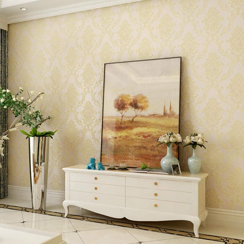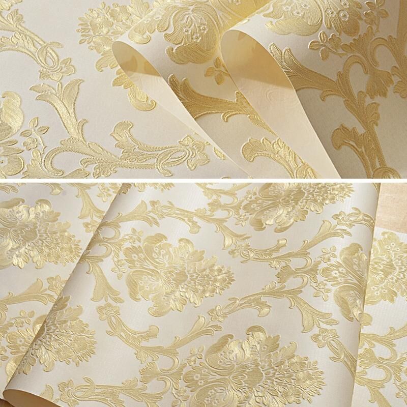 Ταπετσαρία αυτοκόλλητη, μη υφασμένη, πιεσμένη με ακρίβεια 3D, κλασική Δαμασκηνή, για υπνοδωμάτιο και σαλόνι, Προδιαγραφές: 0.53 x 3 μέτρα (JA205 Κίτρινο)
