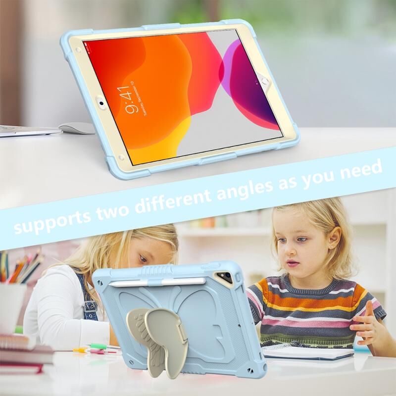 Beige PC + Silicone Anti-drop Protective Case with Butterfly Shape Holder & Pen Slot For iPad 10.2 2021 & 2020 & 2019 / Air 3 10.5 inch(Beige + Ice Crystal Blue)