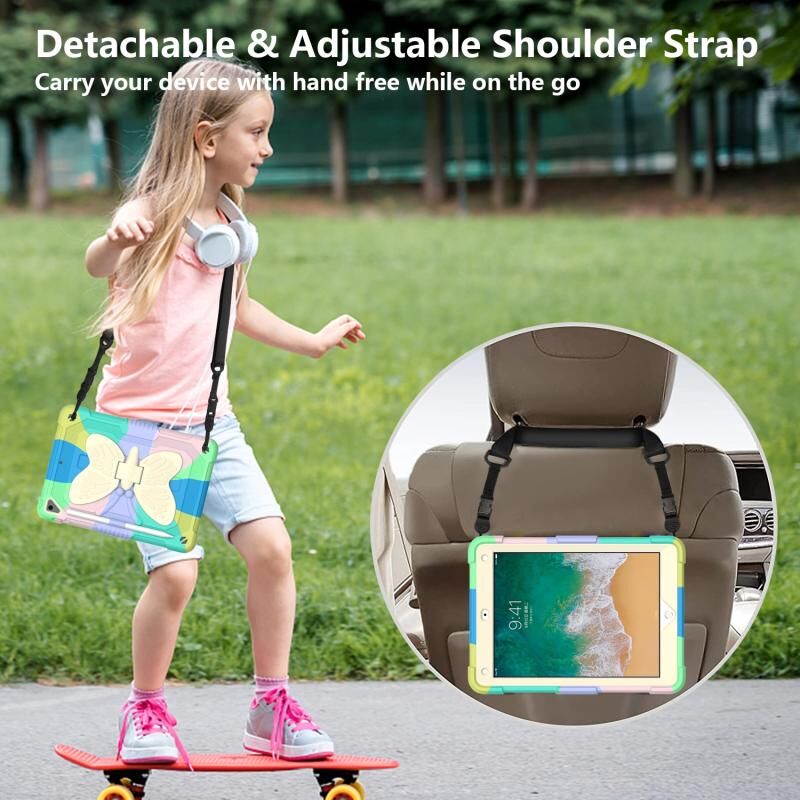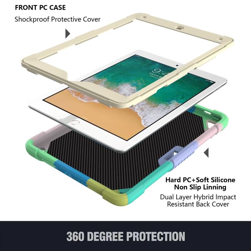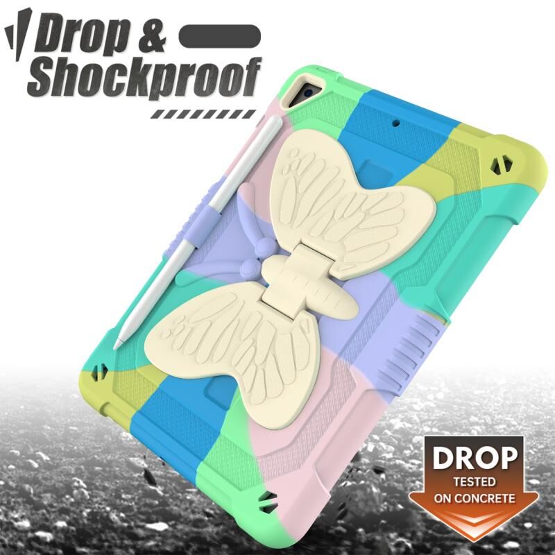 Beige PC + Silicone Anti-drop Protective Case with Butterfly Shape Holder & Pen Slot For iPad 9.7 2018 & 2017 / Pro 9.7 inch / Air 2 / 6(Colorful Green)