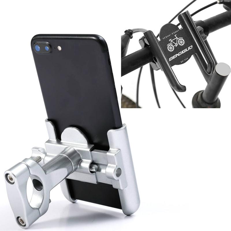 BENGGUO Bicycle Aluminum Alloy Mobile Phone Holder Electric Motorcycle Anti-Vibration Navigation Fixed Mobile Phone Holder Riding Equipment, Style:Handlebar Installation(Silver) (BENGGUO)