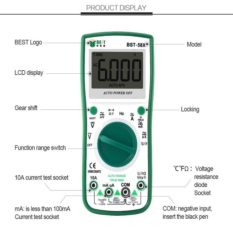 13. Μέγιστη ένδειξη: 5999 (αυτόματη ένδειξη πολικότητας 55/6)