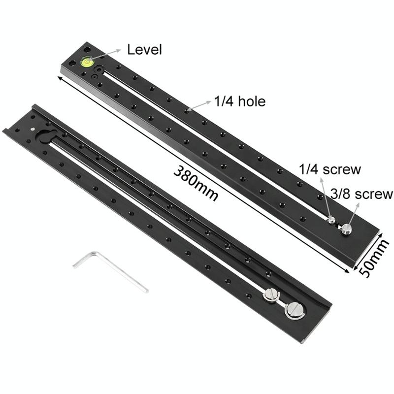 5. The plate measures 380mm lengthquick release plate to provide additional leverage for larger cameras and provide more room for mounting optional components, such as a rod mount for a follow focus motor, zoom motor, or lens support.