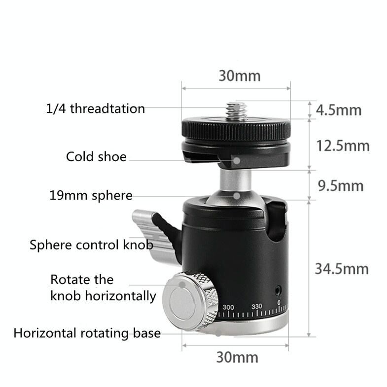 6. It is both a gimbal and a cold shoe, the ball rotates +360 degrees, and it can rotate horizontally