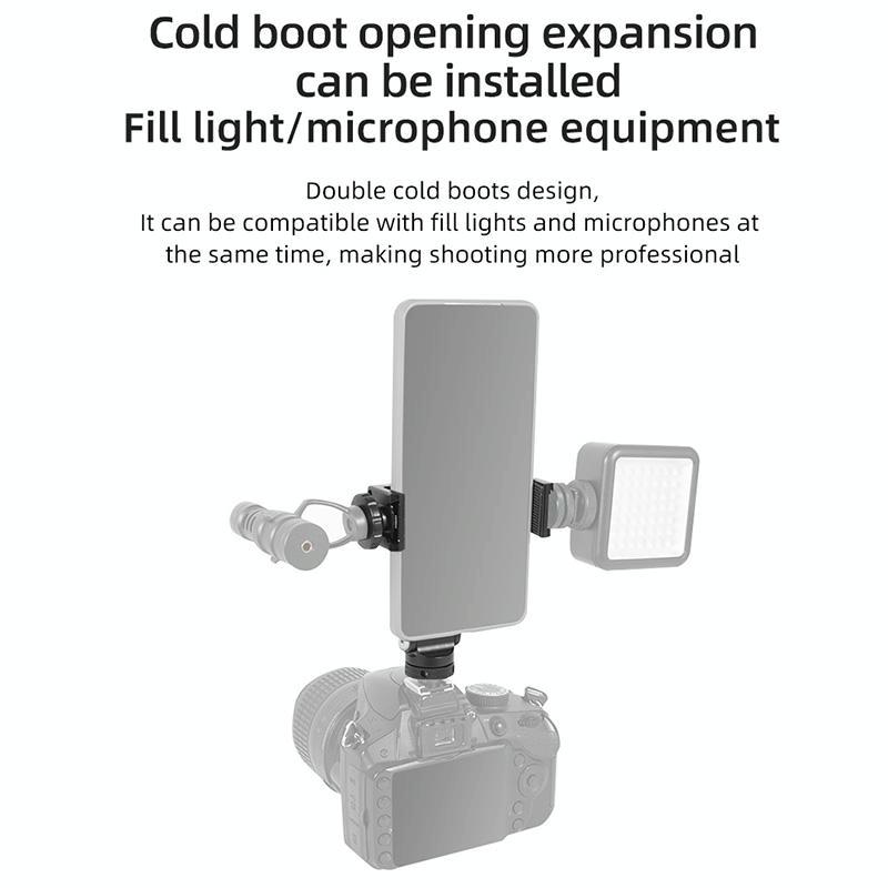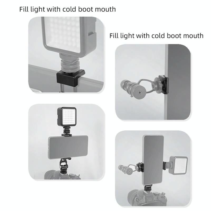 2. Design with cold shoes mount on top, you can use to attach extra video lights, flashes, LED lights or microphones.