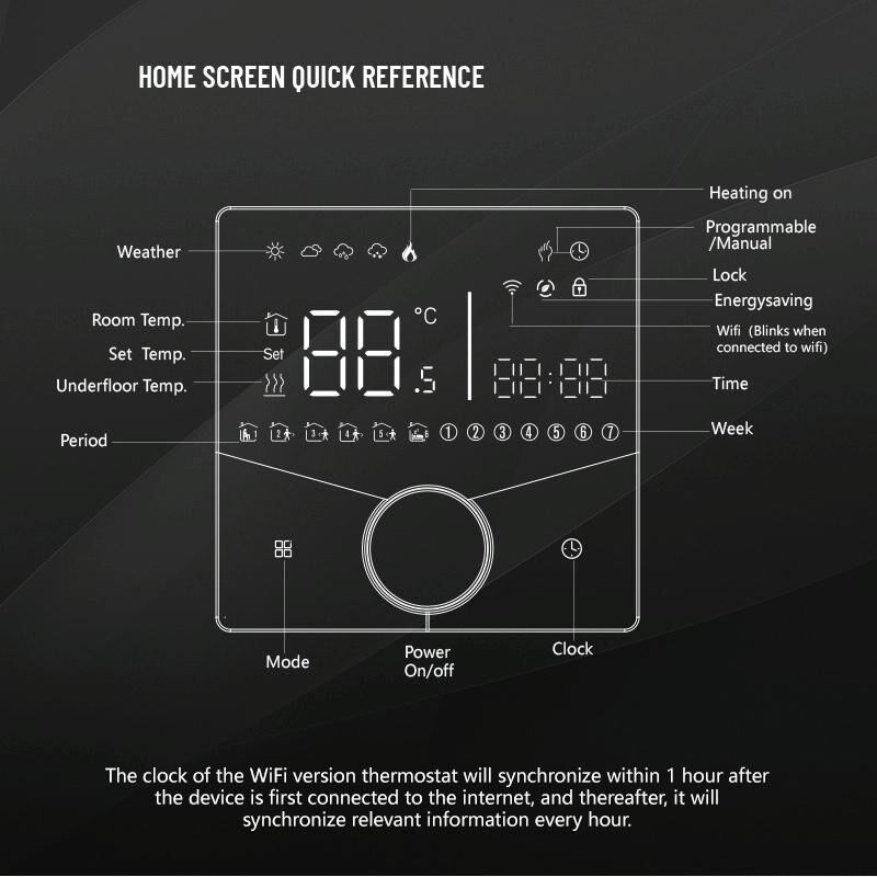 4. Preset adjustment of 5+1+1 mode in a week, programmable setting of 6 time periods a day, green energy saving, Less cost, more intelligent and environmental protection;