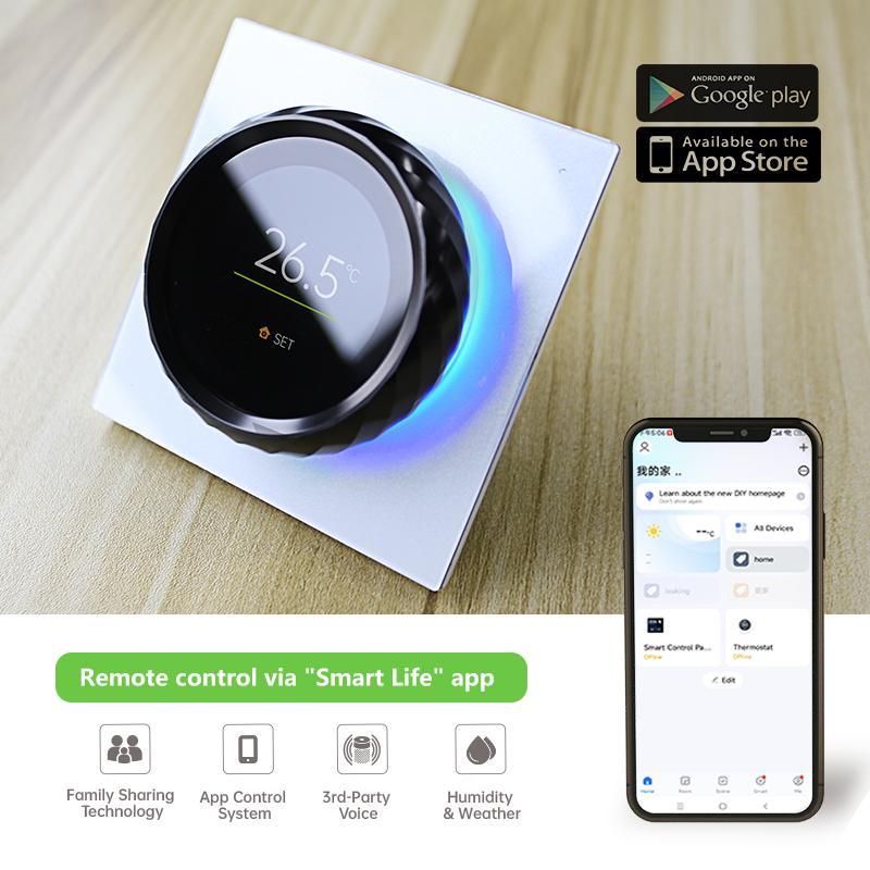 BHT-2007-P16-GCLW Boiler Heating 1.6 inch TFT Color Screen WiFi Smart hreaded Knob Thermostat(White Black)