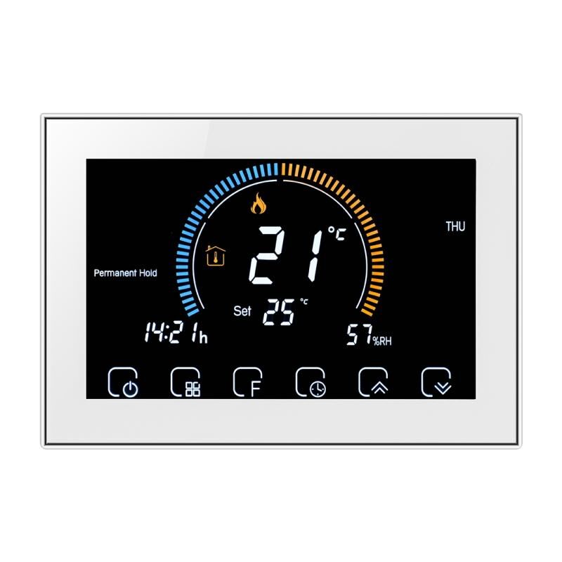 BHT-8000-GA Έλεγχος θέρμανσης νερού Εξοικονόμηση ενέργειας και φιλική προς το περιβάλλον Έξυπνη οικιακή αρνητική οθόνη LCD στρογγυλού θερμοστάτη δωματίου χωρίς WiFi (λευκό)