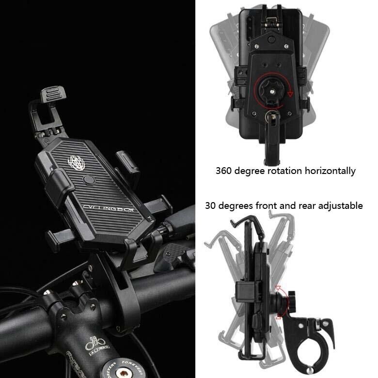 Θήκη Κινητού Τηλεφώνου για Ποδήλατο με Περιστροφή και Ρύθμιση, Σταθερή Βάση από Κράμα Αλουμινίου, Αυτόματη Σύσφιξη, Στυλ: Εγκατάσταση σε Τιμόνι (Μαύρο)