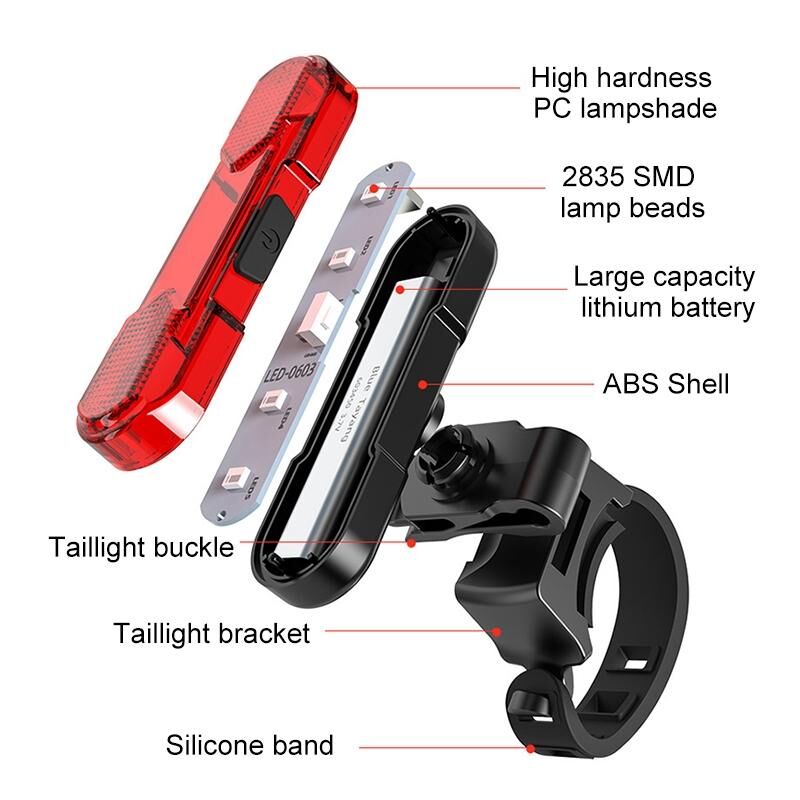 Επαναφορτιζόμενος οπίσθιος φακός LED ποδηλάτου USB (κόκκινο φως)
