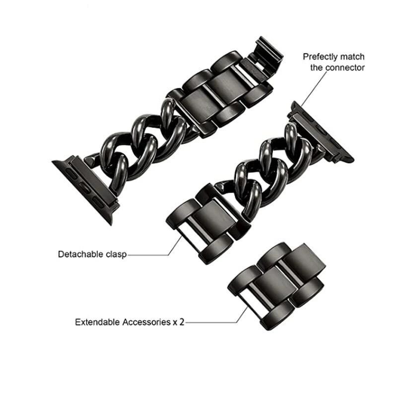 Μεγάλη αλυσίδα από μέταλλο και τζιν για Apple Watch SE 2022 44mm (Μαύρο)