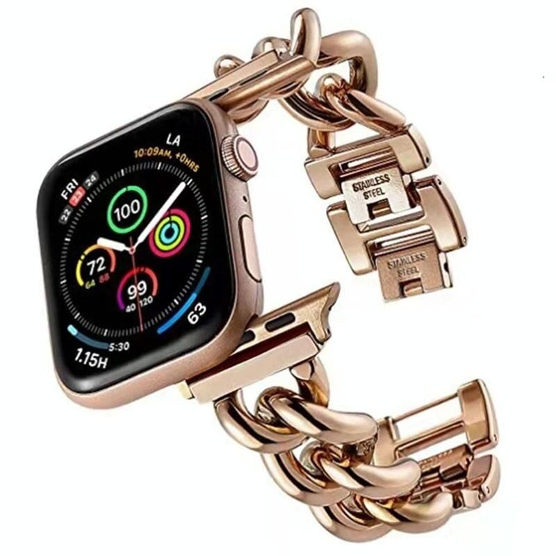 Μεγάλη αλυσίδα από μέταλλο και τζιν για Apple Watch SE 2022 44mm (Ροζ χρυσός)