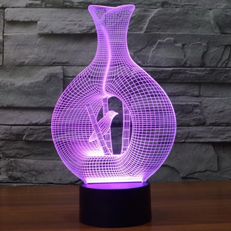 Πουλί στο στυλ κλουβί 3D Touch Switch Control LED Light , 7 χρώματα αποχρωματισμού Δημιουργική οπτική στερεοφωνική λάμπα φωτιστικό γραφείου νυχτερινό φως