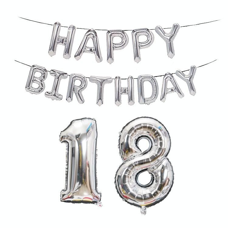Birthday Decoration Aluminum Foil Balloon 40 Inch Big Number Aluminum Foil Balloon Decoration Set, Style:18(Silver)