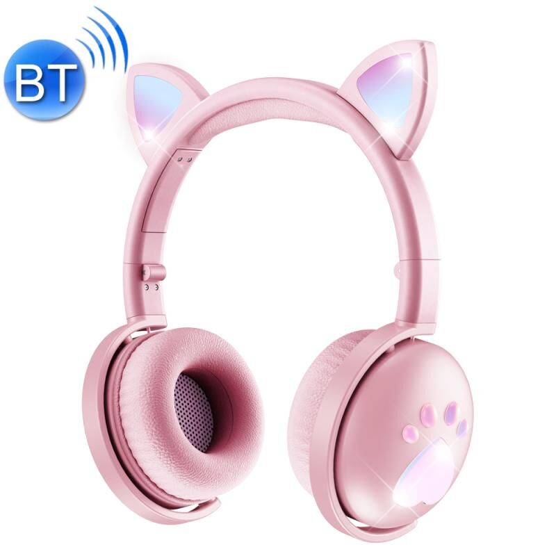 BK9 HiFi 7.1 Surround Sound Cat Claw Φωτεινά ακουστικά παιχνιδιών Bluetooth με μικρόφωνο (ροζ)