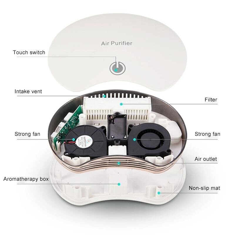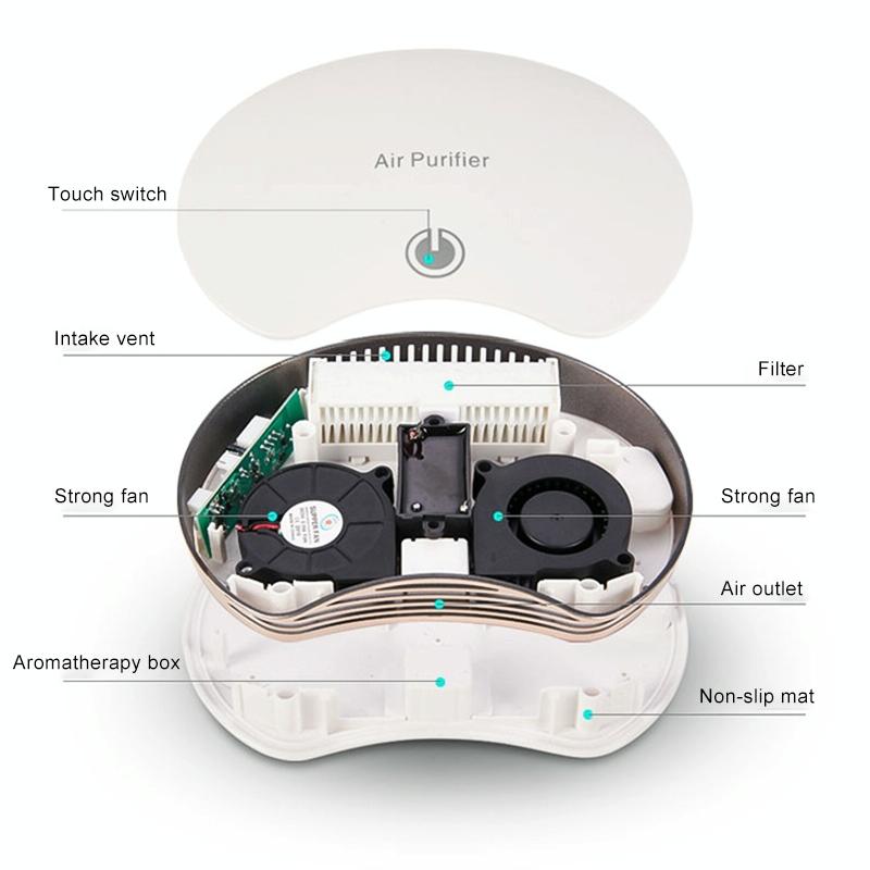 1. The air purifier has multi-layer filtration, which quickly kills all kinds of respiratory tract infection viruses, removes all kinds of odor, effectively filters PM2.5 particles, adsorbs above 99% of the formaldehyde, benzene and other harmful gases, and creates a comprehensive and healthy vehicle environment.