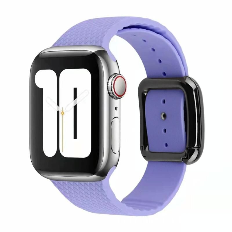 Black Buckle Silicone Watch Band For Apple Watch Series 9&8&7 41mm / SE 3&SE 2&6&SE&5&4 40mm / 3&2&1 38mm(Lilac)