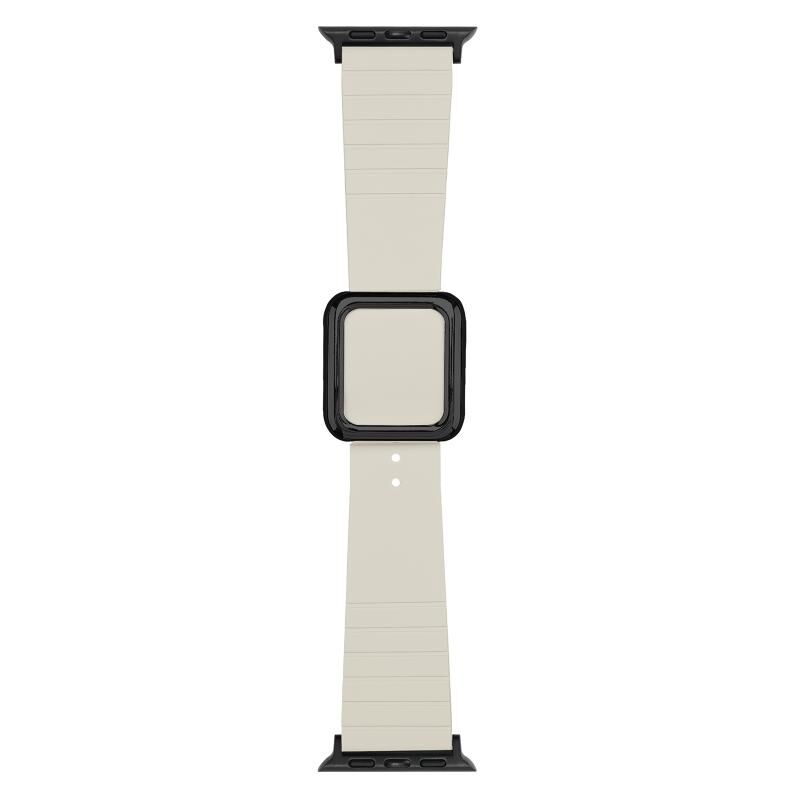 Μαύρη Αγκράφα Τετράγωνου Σχήματος, Λουράκι Σιλικόνης για Apple Watch Ultra 49mm & Watch Ultra 2 49mm / Series 9 & 8 & 7 45mm / SE 3 & SE 2 & 6 & SE & 5 & 4 44mm / 3 & 2 & 1 42mm (Μπεζ)