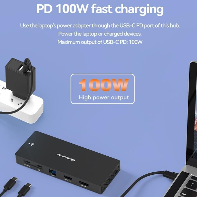 Blueendless 12-In-1 HD Multifunctional Docking Station 10Gbps Splitter With Switch(Dual 8K HDMI+DP) (Blueendless)