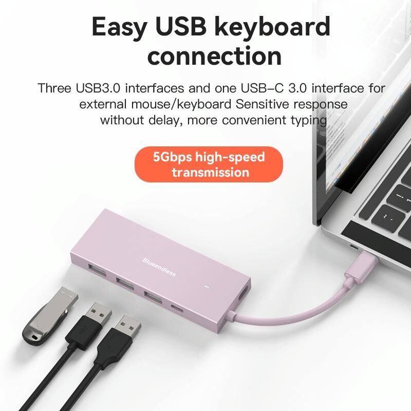 Σταθμός σύνδεσης Blueendless 4K60Hz + Θύρα δεδομένων Type-C, Διαχωριστής USB3.0, Προδιαγραφή: 6-σε-1 Γκρι (Blueendless)