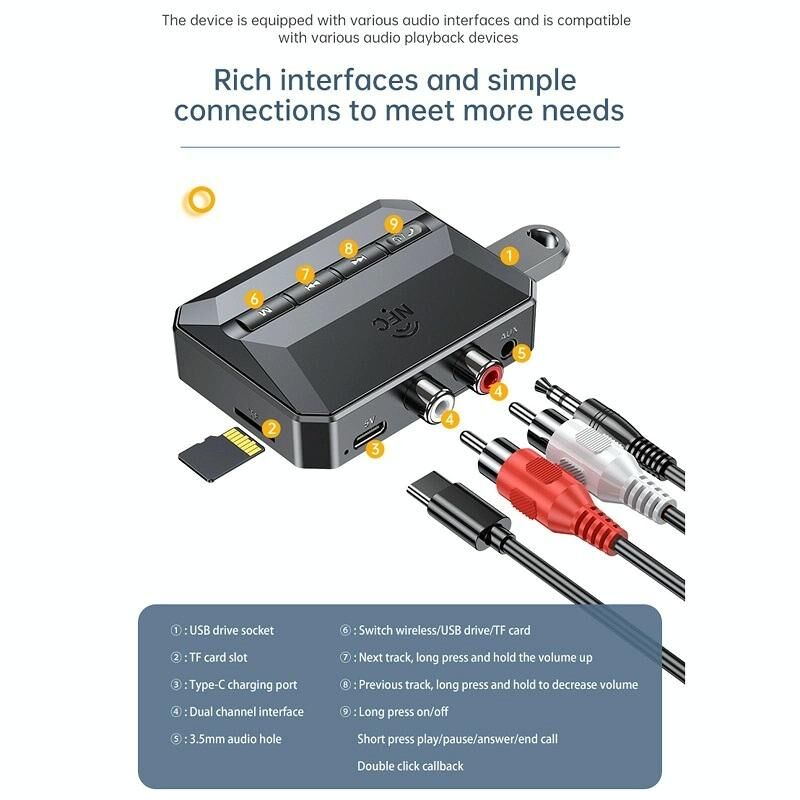 10. Συμβατό με διάφορες μάρκες U disk ή TF κάρτας, ποιότητα ήχου stereo plug and play, χωρίς καθυστέρηση στη μετάδοση