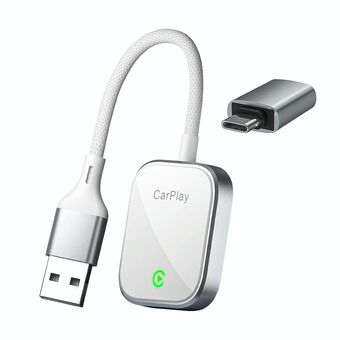 USB, USB-C / Type-C Wired to Wireless Car CarPlay Box Adapter for iPhone(White)
