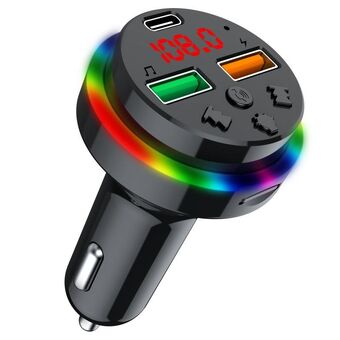PDF16 Car Bluetooth 5.0 FM Transmitter Colorful Ambient Light Type C Dual USB Fast Charging Charger