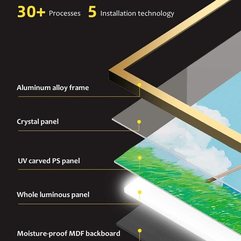 3. Τρισδιάστατη τοποθέτηση 5 στρωμάτων, ελαφρύ μεταλλικό πλαίσιο από κράμα αλουμινίου, βουρτσισμένη υφή, ανθεκτικό σε σκόρο, υγρασία και παραμόρφωση