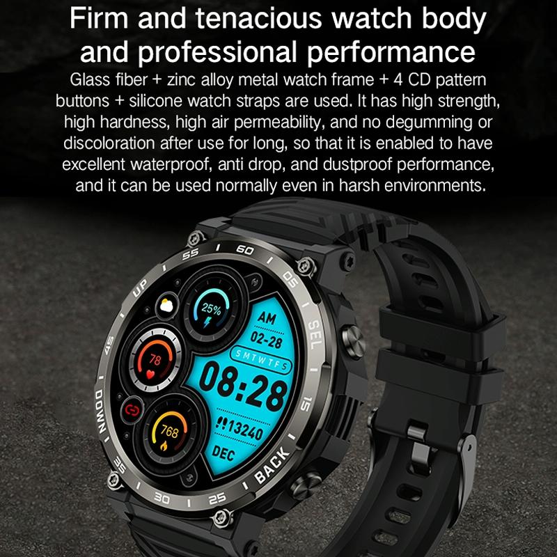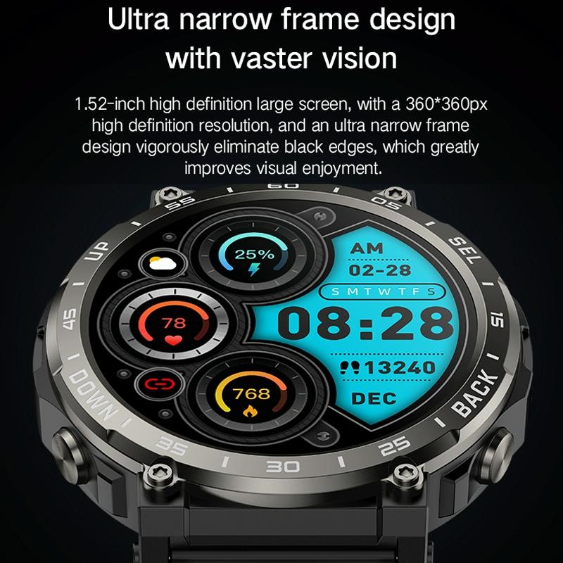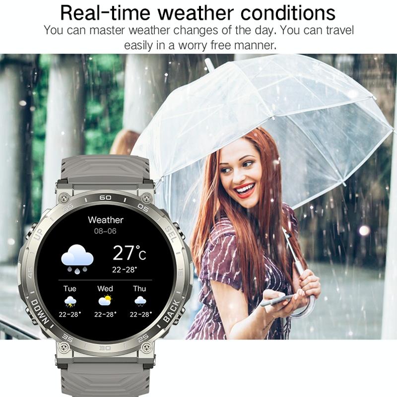 23. Other functions: Bluetooth call, watch direct dialling, watch address book, music playback, countdown, timer, calculator, split screen, music control, find mobile phone, find watch, stopwatch, remote control photo, weather, screen brightness adjustment, sports track, women health