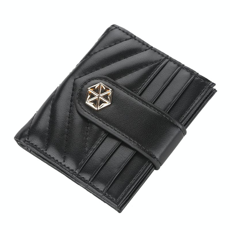 BOISEEN Ladies Card Holder Embossed Multi-Card Slot Buckle Bank Card Holder Small Wallet(Black) (BOISEEN)