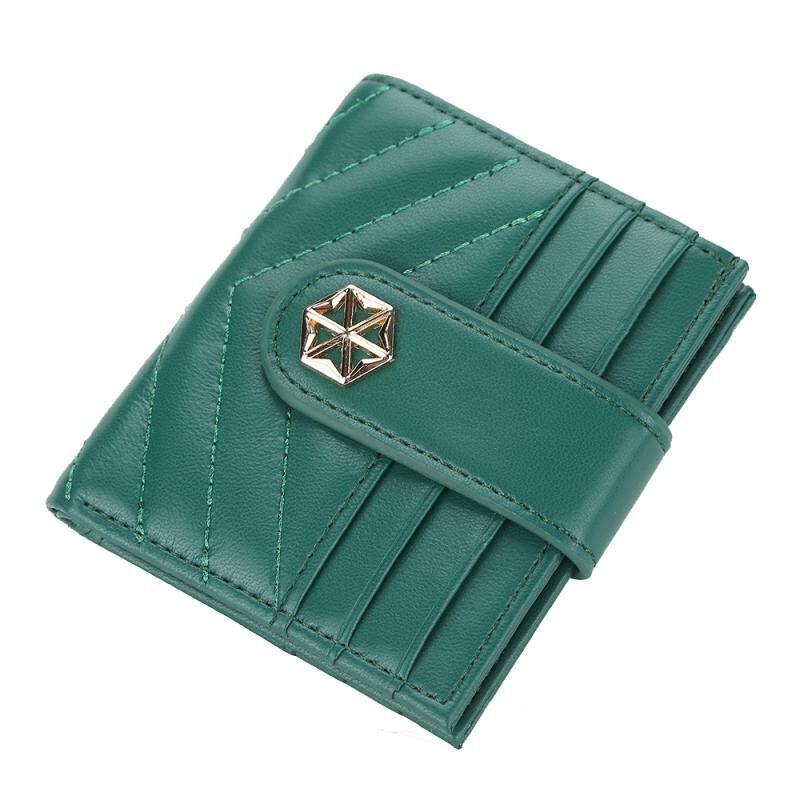 BOISEEN Ladies Card Holder Embossed Multi-Card Slot Buckle Bank Card Holder Small Wallet(Green) (BOISEEN)