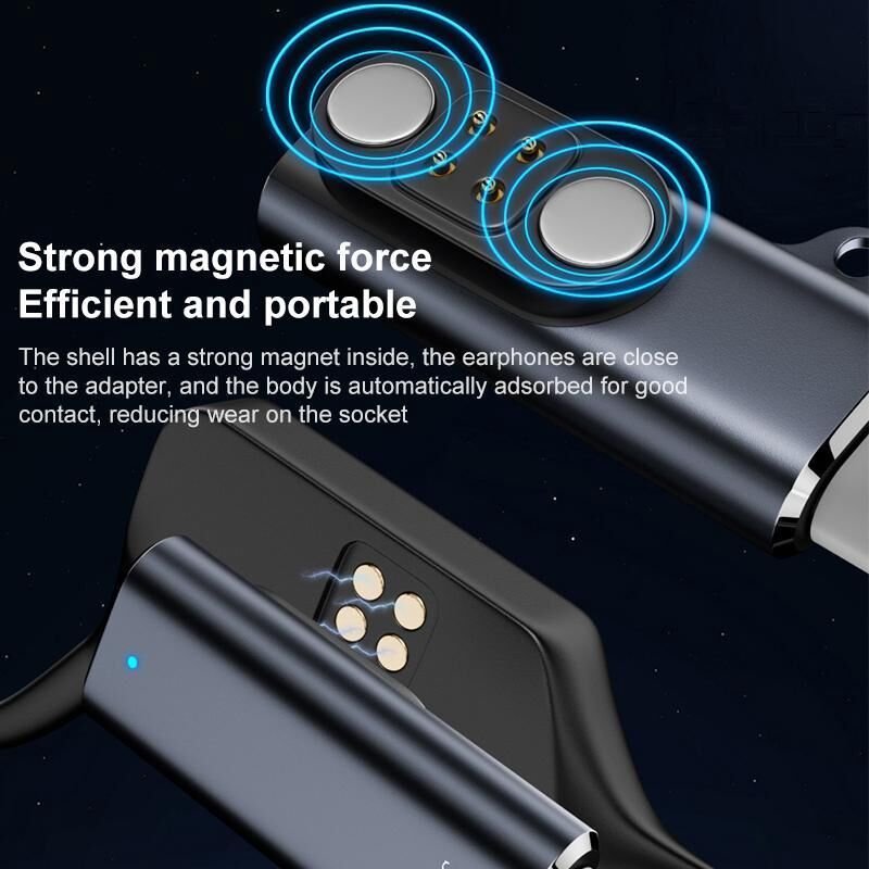 1. Ισχυρός μαγνήτης: ενσωματωμένος ισχυρός μαγνήτης, τα ακουστικά βρίσκονται κοντά στον προσαρμογέα, προσροφάται αυτόματα, καλή επαφή με το σώμα, μειώνοντας τη φθορά της υποδοχής.