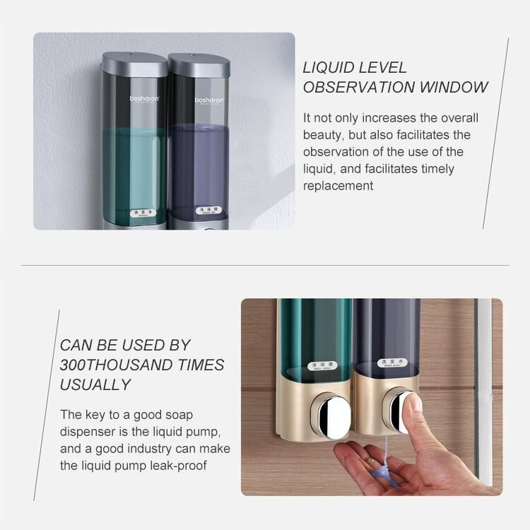 5. Liquid volume observation window, convenient and timely replacement; core soap liquid pump, 300,000 times without leakage; lock cover is more hygienic; the liquid volume is even and smooth, 0.5 ml of liquid per press