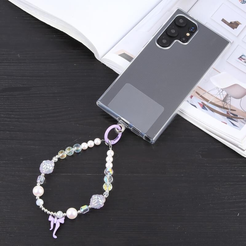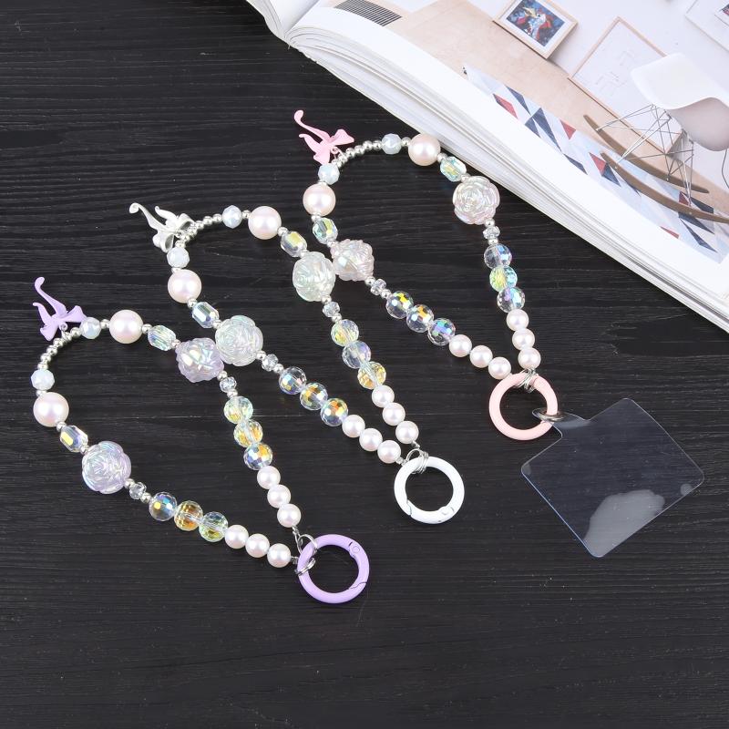 Bowknot Flowers Bead Chain Anti-lost Phone Short Lanyard(Pink)